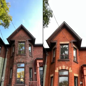 Carbon staining is caused by decades of carbon being deposited onto the brick from air pollutants. It can be identified as a matte black brick stain coating on the bricks. Luckily, it only requires cleaning every 30-50 years. Cleaning exterior brick stain is a very specialized process, as the cleaning solutions used are highly corrosive and dangerous. The cleaning solutions used to remove carbon can burn plants, etch windows, tarnish metallic surfaces, and strip paint. Proper covering of plants, windows, doors, etc, is vital to reducing the risk of damage while cleaning carbon. This all being said, removing carbon staining from bricks is hands down the most rewarding exterior makeover possible. It will completely restore your home to its former glory and bring it back to life.